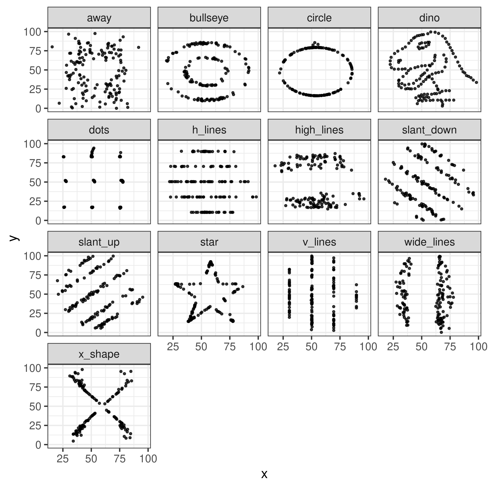 Same Stats, Different Graphs: Generating Datasets with Varied Appearance and Identical Statistics through Simulated Annealing