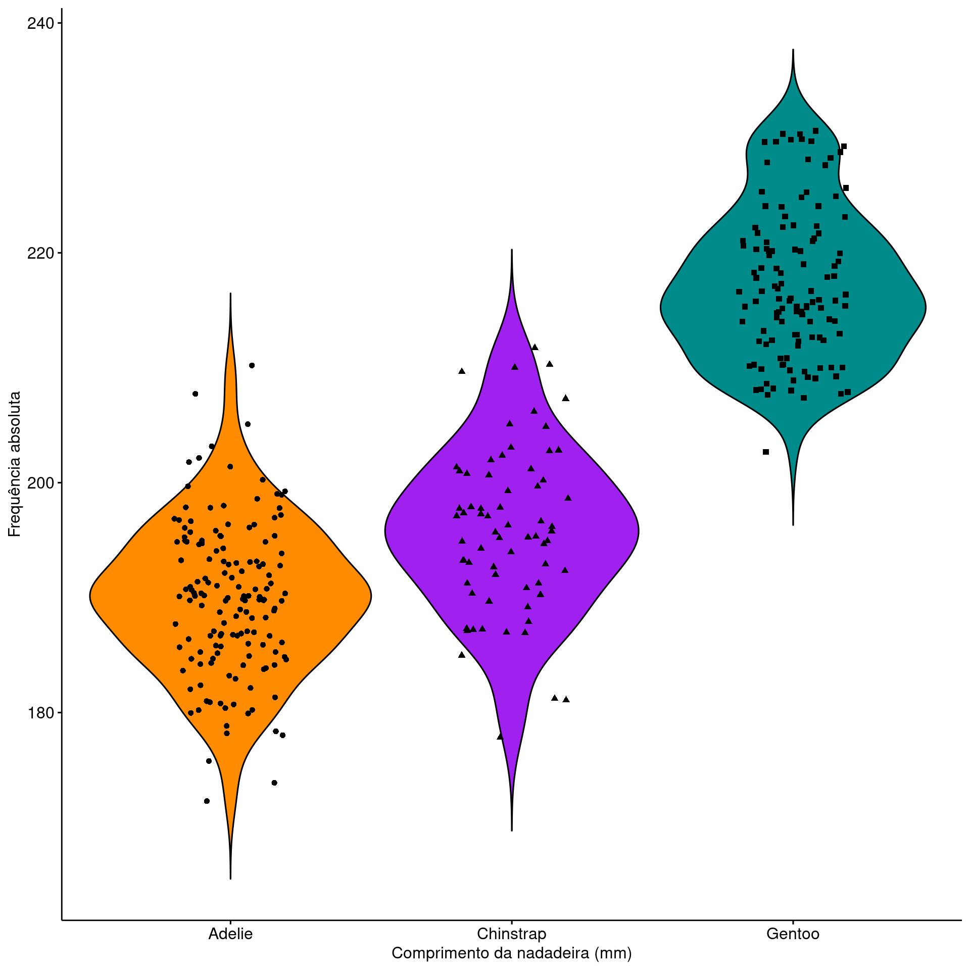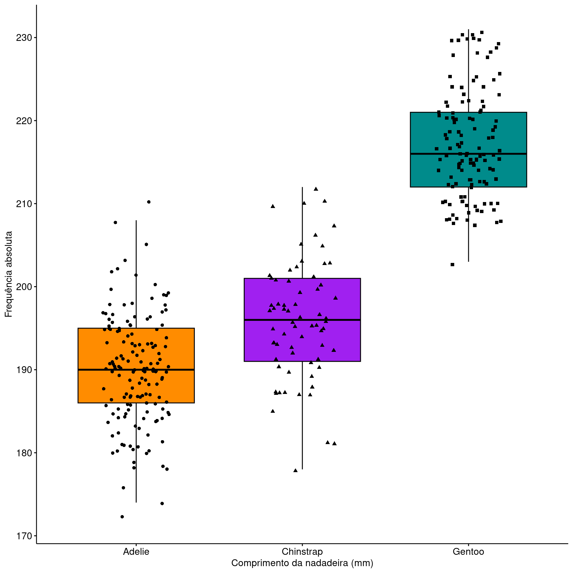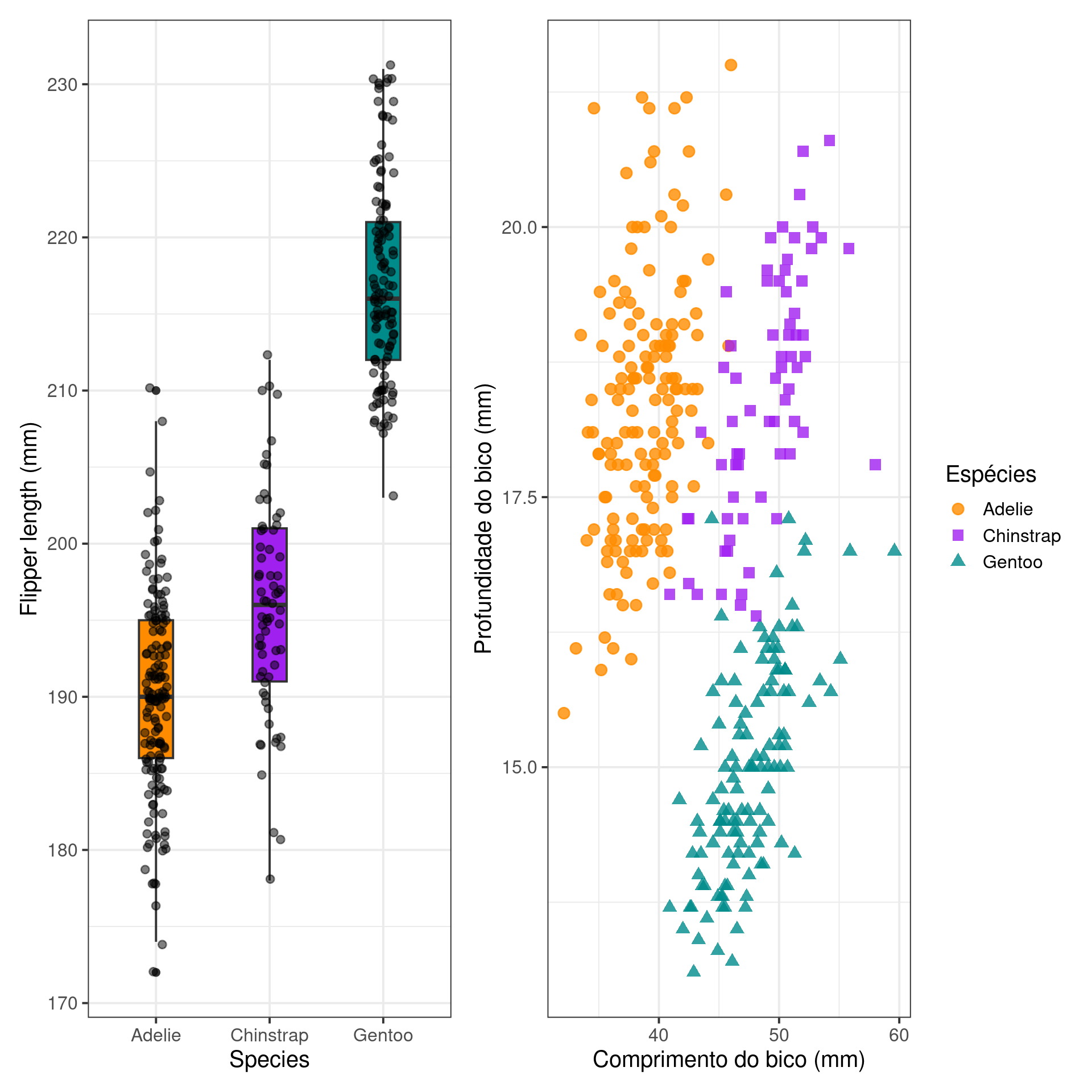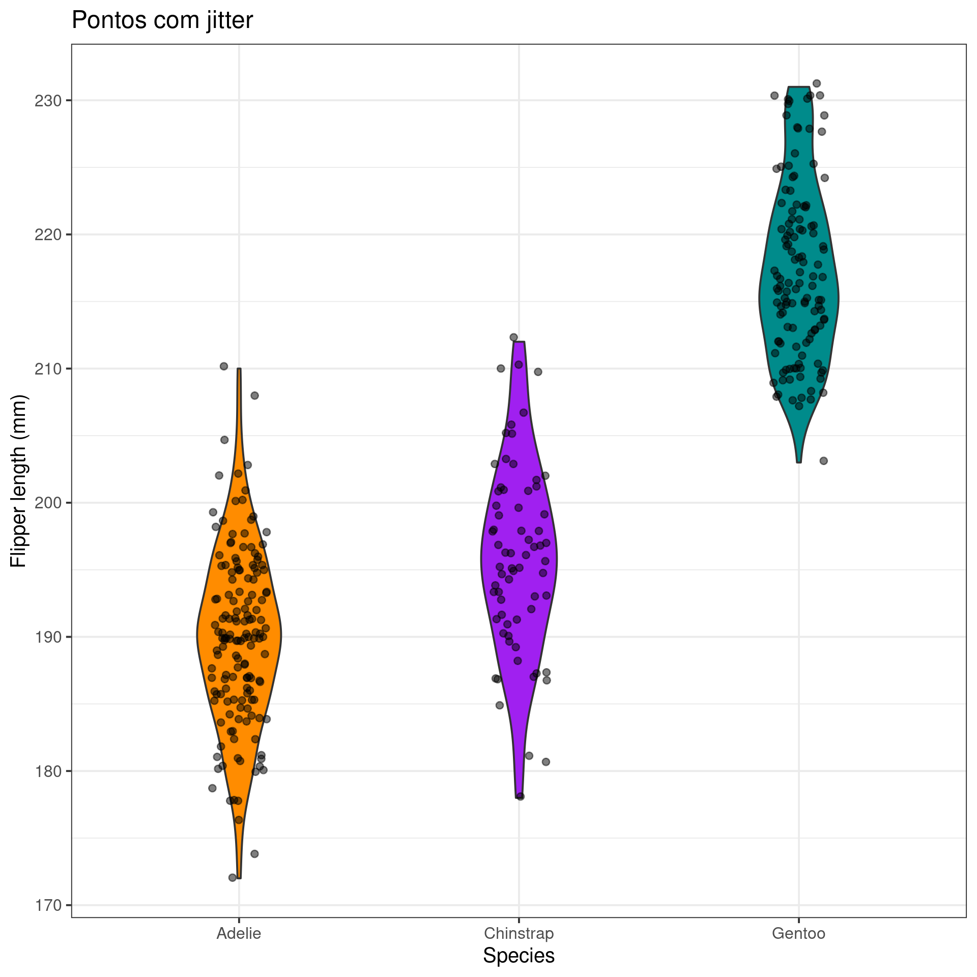 labs(title = "Pontos com jitter", x = "Species", y = "Flipper length (mm)")