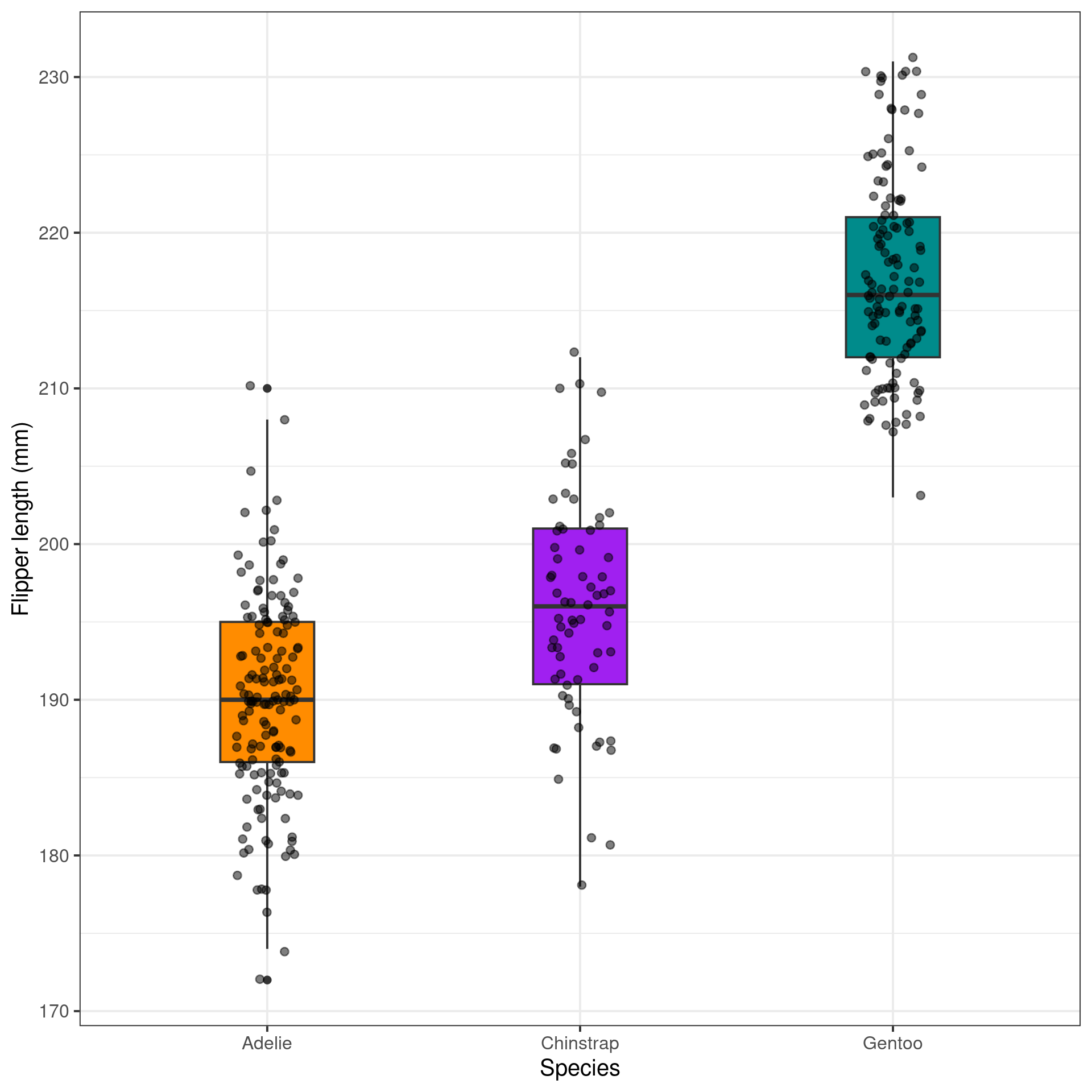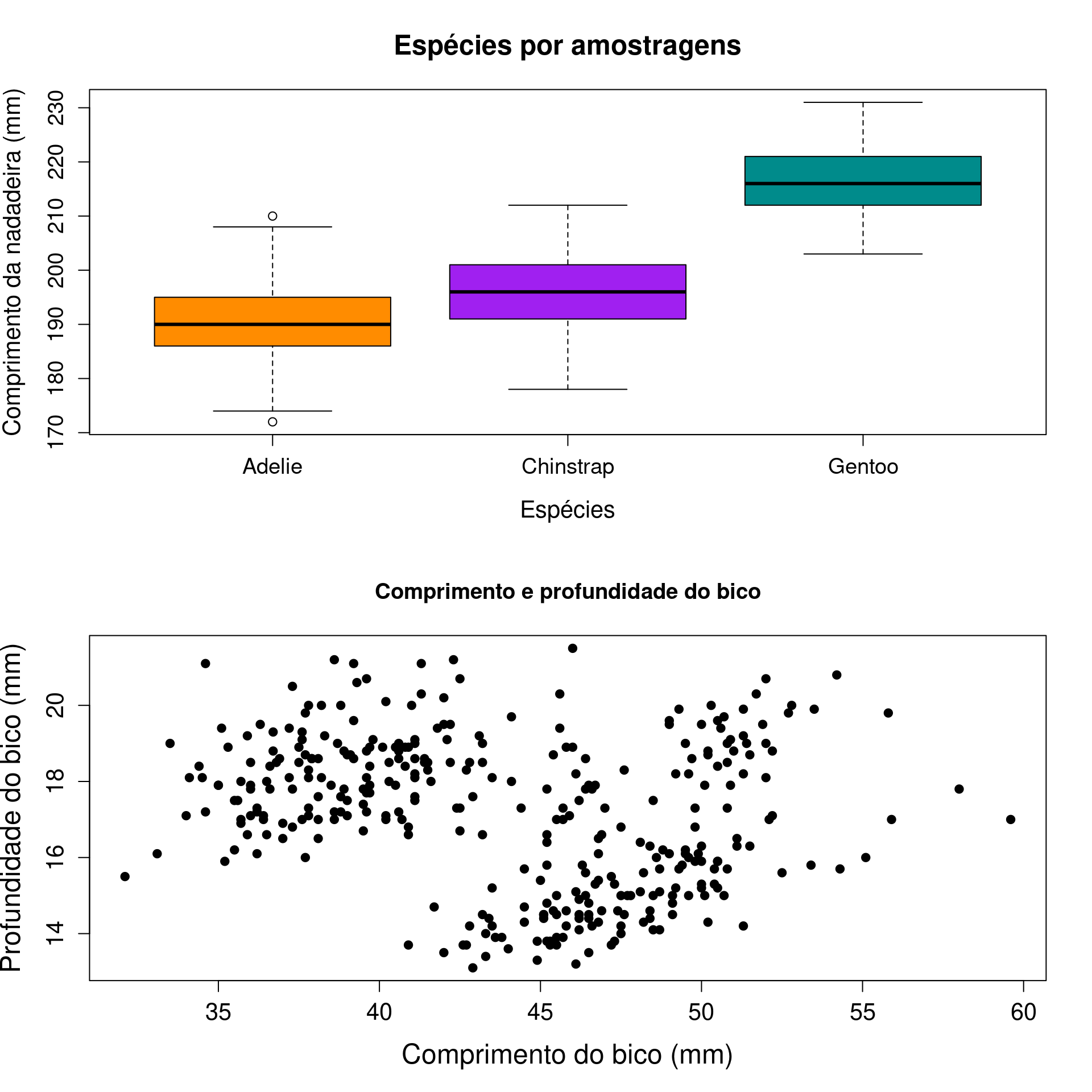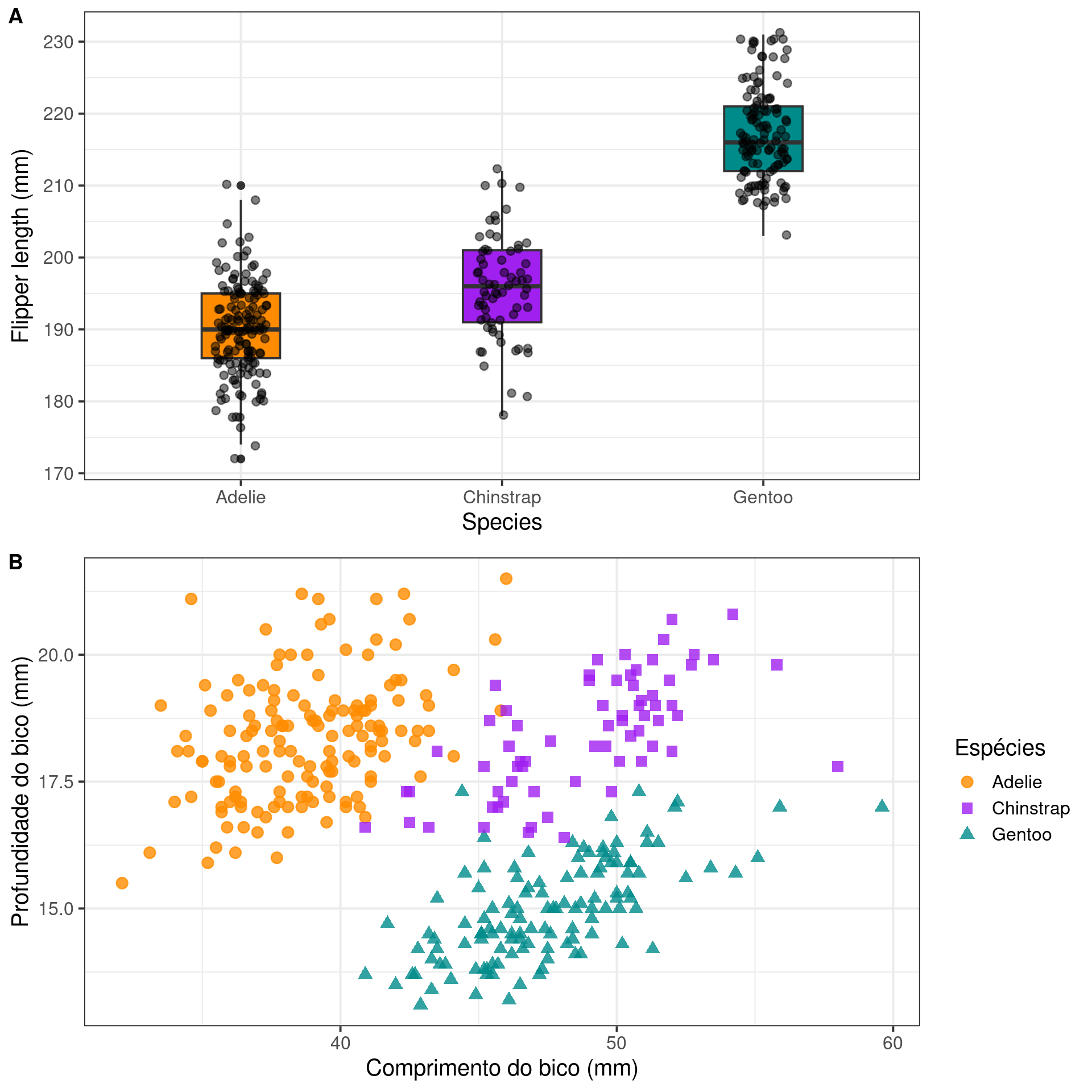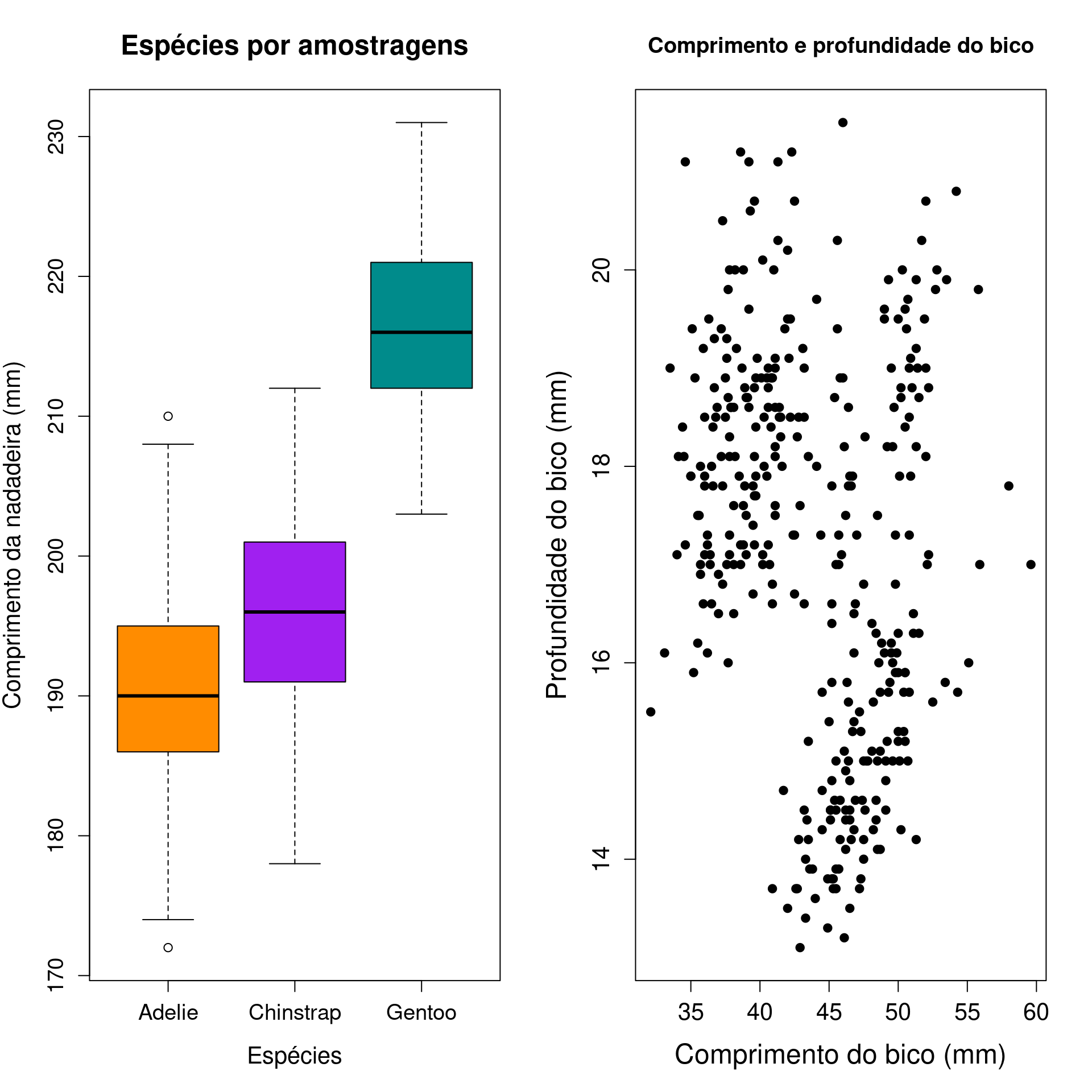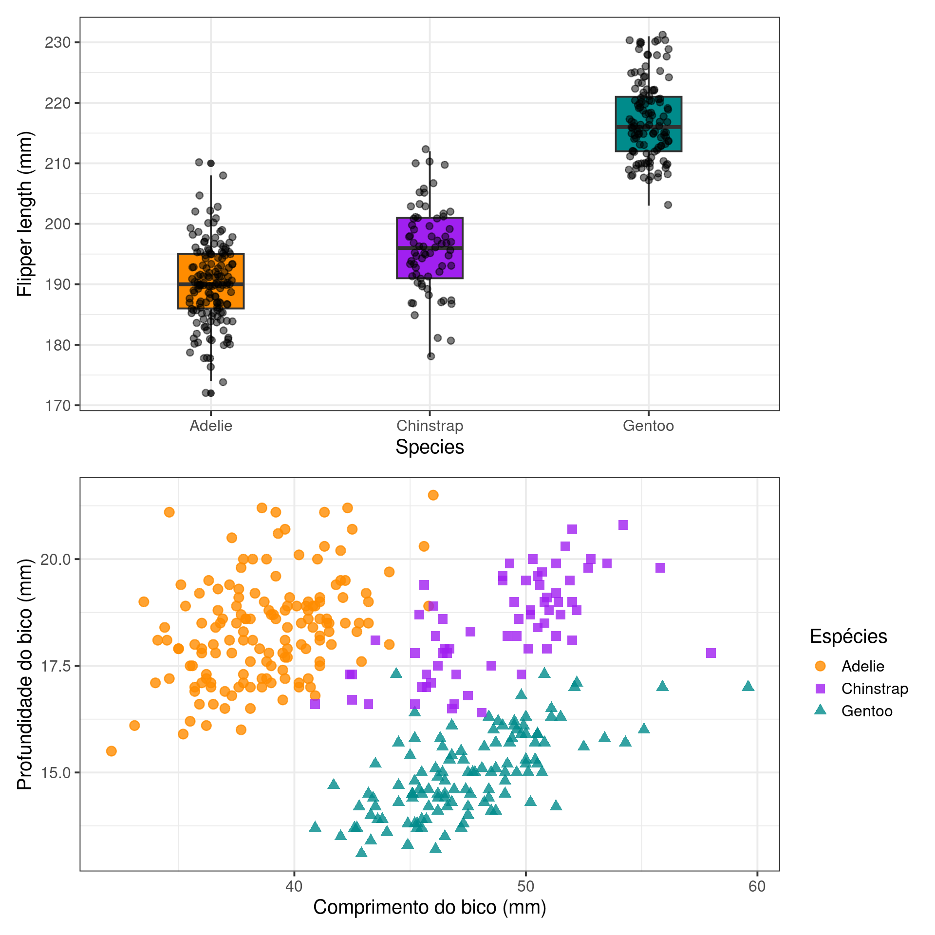 labs(title = "Pontos com jitter", x = "Species", y = "Flipper length (mm)")