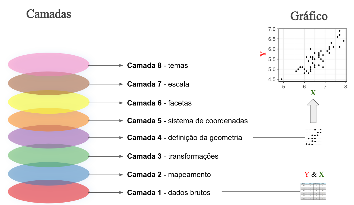 Wickham (2008) criou o pacote ggplot2, onde “gg” representa a contração de Grammar of Graphics
