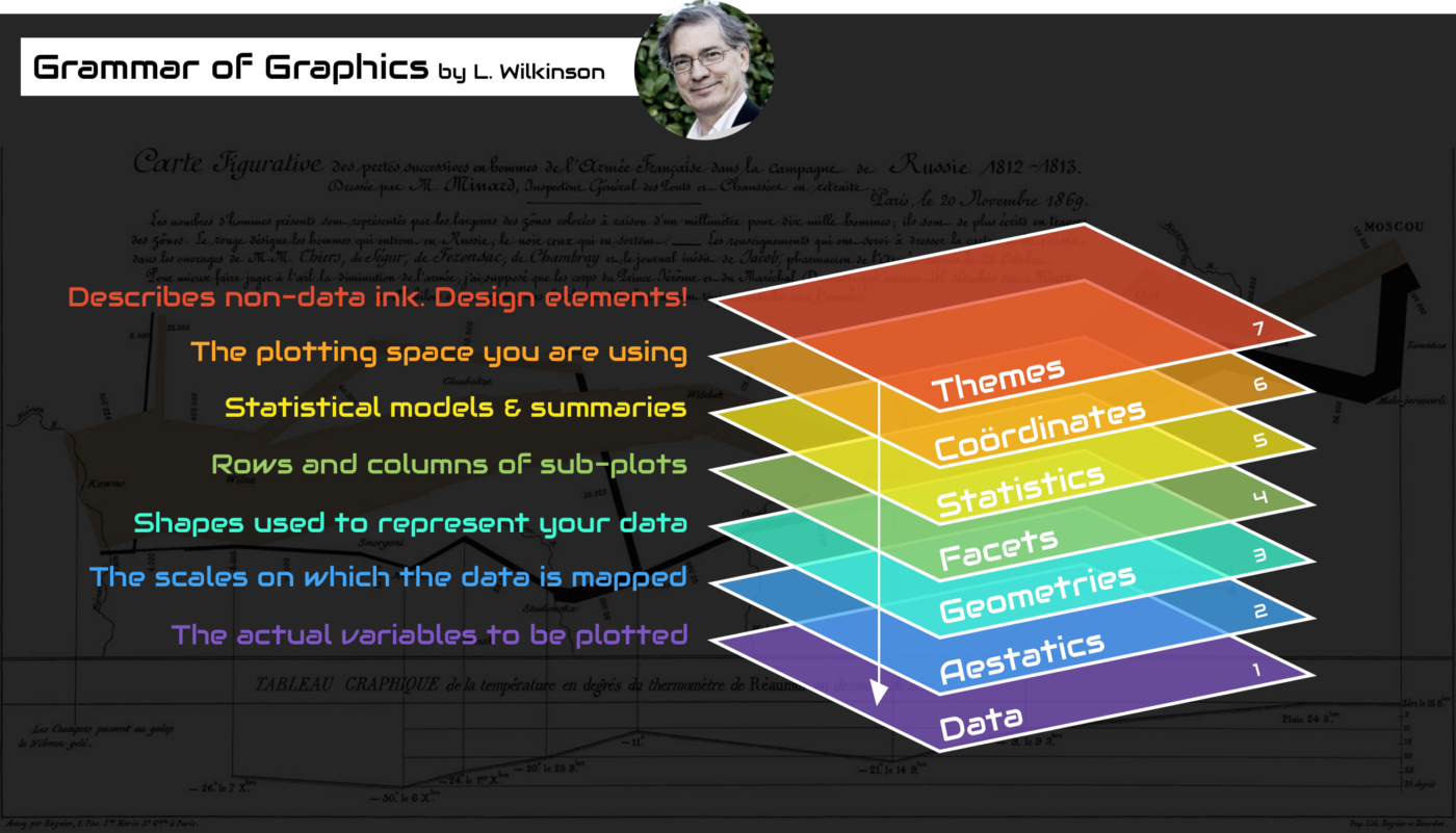 Wilkinson (2005) Grammar of Graphics: representação gráfica dos dados a partir de atributos estéticos (do inglês aesthetic)